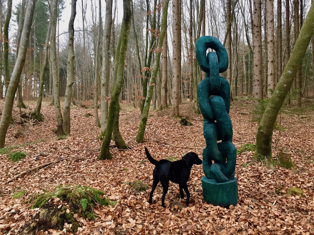 Fräulein Rosa, mein sehr kunstinteressierter Hund, musste das sofort untersuchen und ein fachmännisches Urteil abgeben: „Das ist sicher eine der sägensreichen Arbeiten von Hannes Kinau. Sowas erkenne ich am Geruch und dem ganz eigenen Holzgeschmack.“ Die kleine Angeberin (von wem sie das nur hat?).