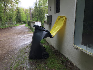Ich rätsel noch, wie die Skulptur wohl geschaffen wurde. Das Material scheint High Density PE aus schwach verzweigten Polymerketten zu sein. Bei der Bearbeitung tippe ich auf Kaltverformung, möglicherweise mit Hilfe eines Umformwerkzeuges der Firma MAN. Wie dem auch sei, das Werk ist auf jeden Fall eine Bereicherung für den Skulpturenweg.